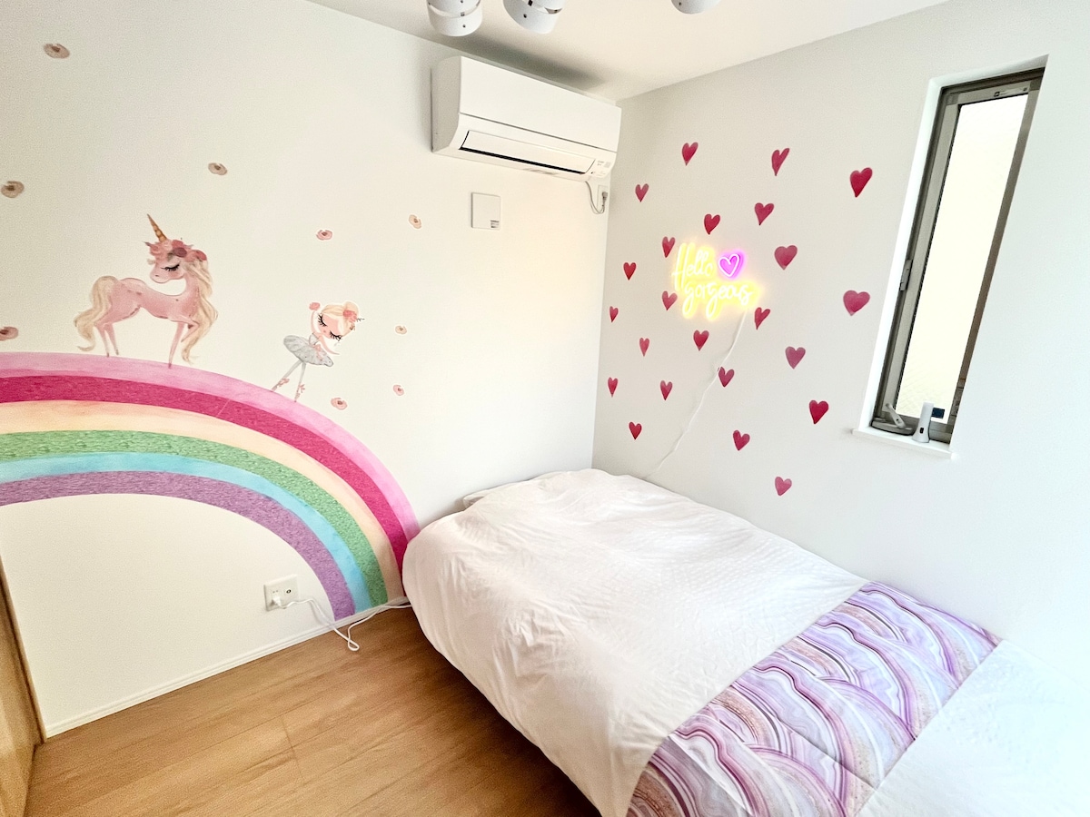 Bienvenue à Fukuoka ! À seulement 6 min en train de Tenjin et à 12 min en voiture de Hakata. Cette maison privée récemment ouverte peut accueillir jusqu'à 10 voyageurs. Un parking gratuit pour 1 voiture est disponible devant la maison. Dépanneur (4 min à pied), supermarché (6 min) et station Takamiya (10 min) sont tous à proximité. Quartier calme et local, idéal pour ceux qui veulent découvrir la vie quotidienne au Japon. La maison comprend une cuisine, une laveuse avec sécheuse et une connexion wifi haute vitesse. Parfait pour les familles, les groupes et les séjours longue durée !