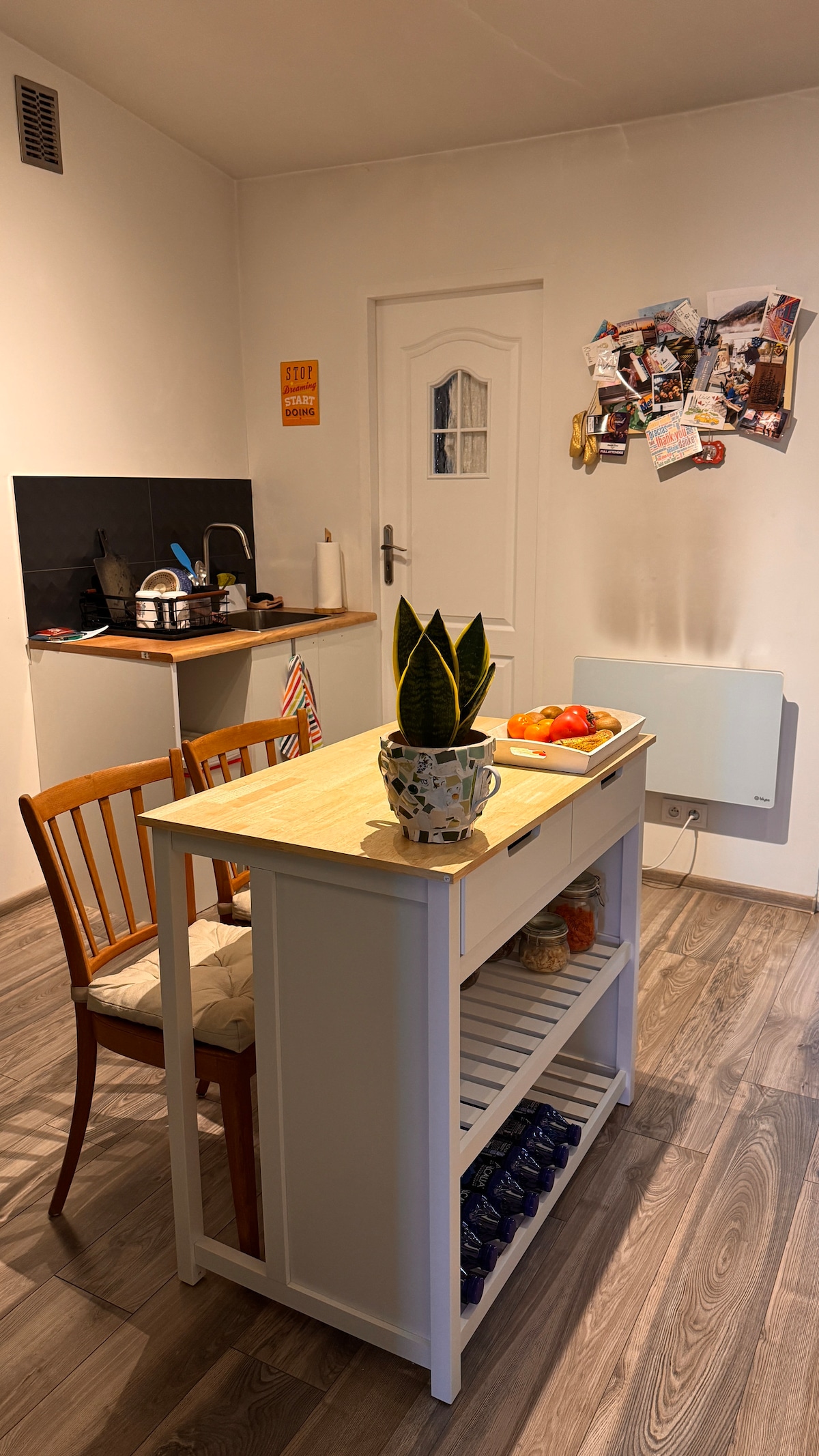 Un appartement compact en plein cœur de la ville. Il propose un hébergement pour 4 personnes. Couchages : un lit double et un lit. Petite salle de bain avec douche et cuisine entièrement équipée. Les fenêtres donnent sur l'arrière-cour d'une maison d'habitation, ce qui vous donne la tranquillité d'esprit depuis l'agitation de la rue je vous invite à réserver :-)