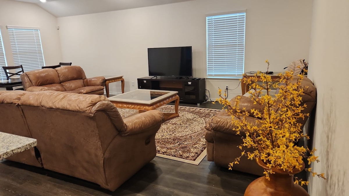 Détendez-vous dans cette retraite spacieuse et moderne de 4 chambres et 2,5 salles de bain située à Forney, au Texas, à seulement 25 minutes de Dallas, conçue pour le confort, le télétravail et le plaisir en famille. Ce logement dispose d'une télévision connectée dans toutes les chambres avec un espace de travail dédié. Que vous déménagiez en famille ou au travail, en voyage d'affaires, cette maison propre et bien entretenue offre tout ce dont vous avez besoin pour un séjour inoubliable, y compris un salon confortable, une connexion Wi-Fi rapide et une salle de bain en bas pour plus de commodité.