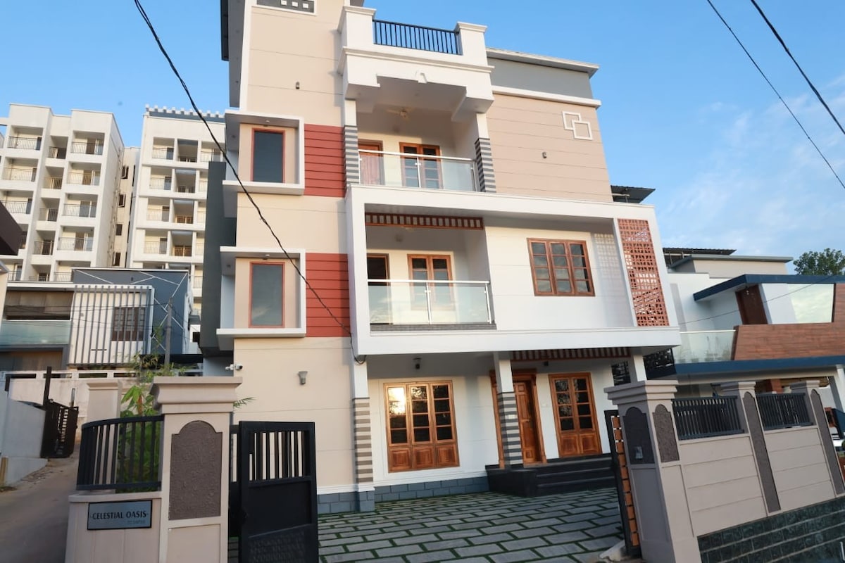 Casa Perla by Eco Escape Hub offre un séjour paisible à Trivandrum avec 3 chambres, 3 salles de bain, une cuisine complète, une terrasse, le wifi gratuit et un stationnement. Situé à seulement 2 km de Technopark et à moins de 1 km du marché et de l'arrêt de bus de Kazhakoottam. Les voyageurs peuvent profiter d'une aire de repos extérieure, d'une réception ouverte en tout temps, de repas emballés sur demande et d'un gardien en option. Navette aéroport (11 km) disponible. Idéal pour les familles et les petits rassemblements avec approbation préalable
