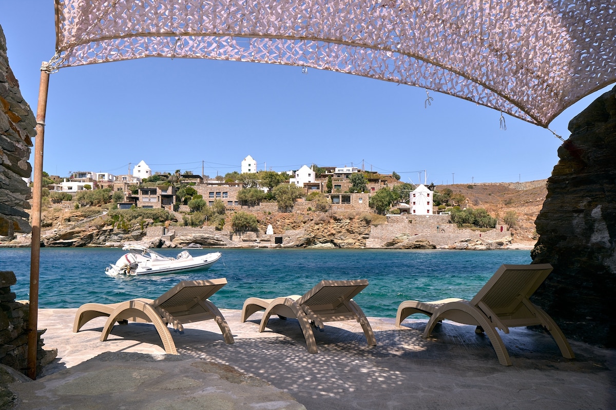 Une villa à couper le souffle nichée au-dessus de la mer Égée cristalline dans l'une des plus belles baies de l'île avec un accès privé à la mer et à distance de marche d'une petite plage cachée. L'emplacement est serein, privé et absolument relaxant. Se réveiller au son des vagues et passer la journée pieds nus entre la terrasse, la plage et l'eau est un bonheur. Plongez dans l'eau turquoise ou détendez-vous dans la baie en écoutant le doux murmure des vagues sur le rivage et en admirant la rencontre du bleu de la mer Égée et du ciel.