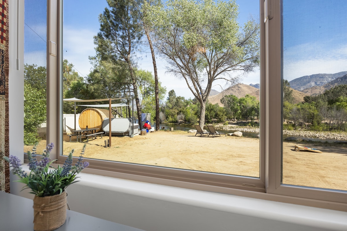 Cette roulotte au bord de la rivière offre une ambiance de ferme directement sur la rivière Kern. Entièrement meublé et bien équipé, profitez du confort d'un chez-soi pour une escapade confortable et relaxante. Sortez dans votre cour privée et dégustez un café du matin avec une vue sereine sur la rivière, ou détendez-vous simplement dans les environs naturels. À l'intérieur, vous trouverez des couchages confortables, des draps propres et une cuisine équipée pour faciliter votre séjour en vous connectant à la nature le long de la rivière Kern.