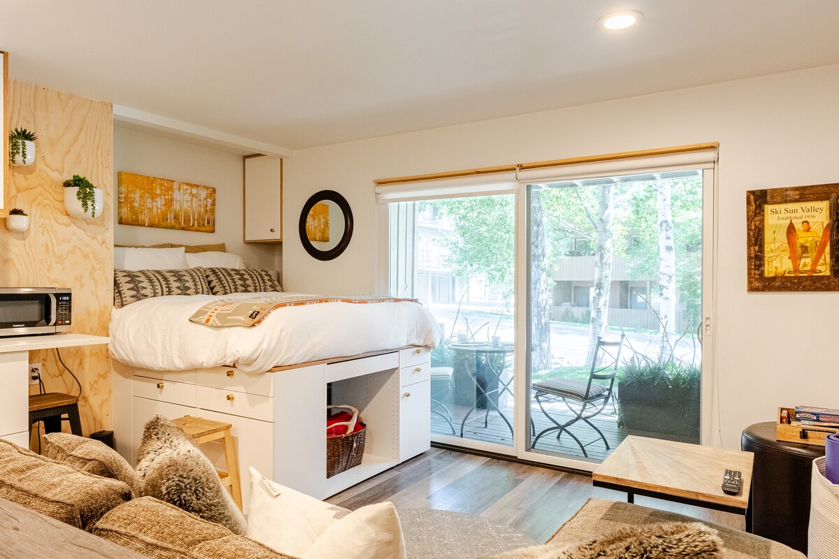 Vous ne pouvez pas battre l'emplacement de ce studio à distance de marche de tout ! Profitez de la cuisine complète et de la vue sur la montagne en plein cœur de Ketchum. Déballez vos affaires, détendez-vous et profitez de votre séjour ! Tout est à portée de main : les remontées mécaniques de River Run, le sentier BCRB, les restaurants, les galeries d'art, les boutiques, les divertissements et les magasins sont tous à moins d'un demi-mille à pied. Le système de bus local à seulement une rue peut également vous permettre de vous déplacer facilement.