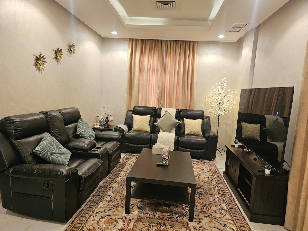 Le mélange parfait d'un séjour simple, abordable et confortable au cœur de Salmiya. *Arrivée autonome(code fourni avant l'arrivée * L'appartement dispose de 2 chambres, dont une principale avec salle de bain attenante. *Les deux chambres disposent de lits queen size (160*200) parfaits pour 2 personnes. * L'appartement dispose d'une connexion Internet 5G * Téléviseur Samsung de 70 po dans le salon et téléviseur Wansa de 55 po dans la chambre principale avec Netflix, Prime Video et YouTube. * Tous les articles de toilette de base sont fournis * Cuisine avec appareils de base, y compris lave-linge. *Réfrigérateur avec minibar