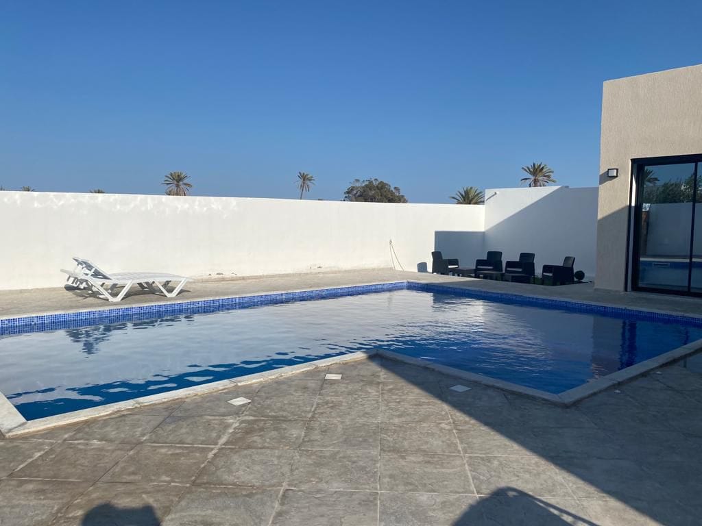 ✨ 𝐕𝐢𝐥𝐥𝐚 𝐆𝐡𝐨𝐟𝐫𝐚𝐧𝐞 ✨ Offrez-vous un nouveau cadre de vie dans un quartier calme et prisé de Djerba. Cette magnifique villa est idéale pour une vacance innobliable. Confort, intimité et élégance vous attendent ! 🏡 𝐃𝐞́𝐭𝐚𝐢𝐥𝐬 𝐝𝐞 𝐥𝐚 𝐕𝐢𝐥𝐥𝐚 : ✅ 1 suite parentale spacieuse ✅ 2 chambres supplémentaires ✅ 1 salle de bain moderne ✅ Salon lumineux et convivial ✅ Cuisine équipée ✅ Piscine privée sans vis-à-vis ✅ Abri de voiture.