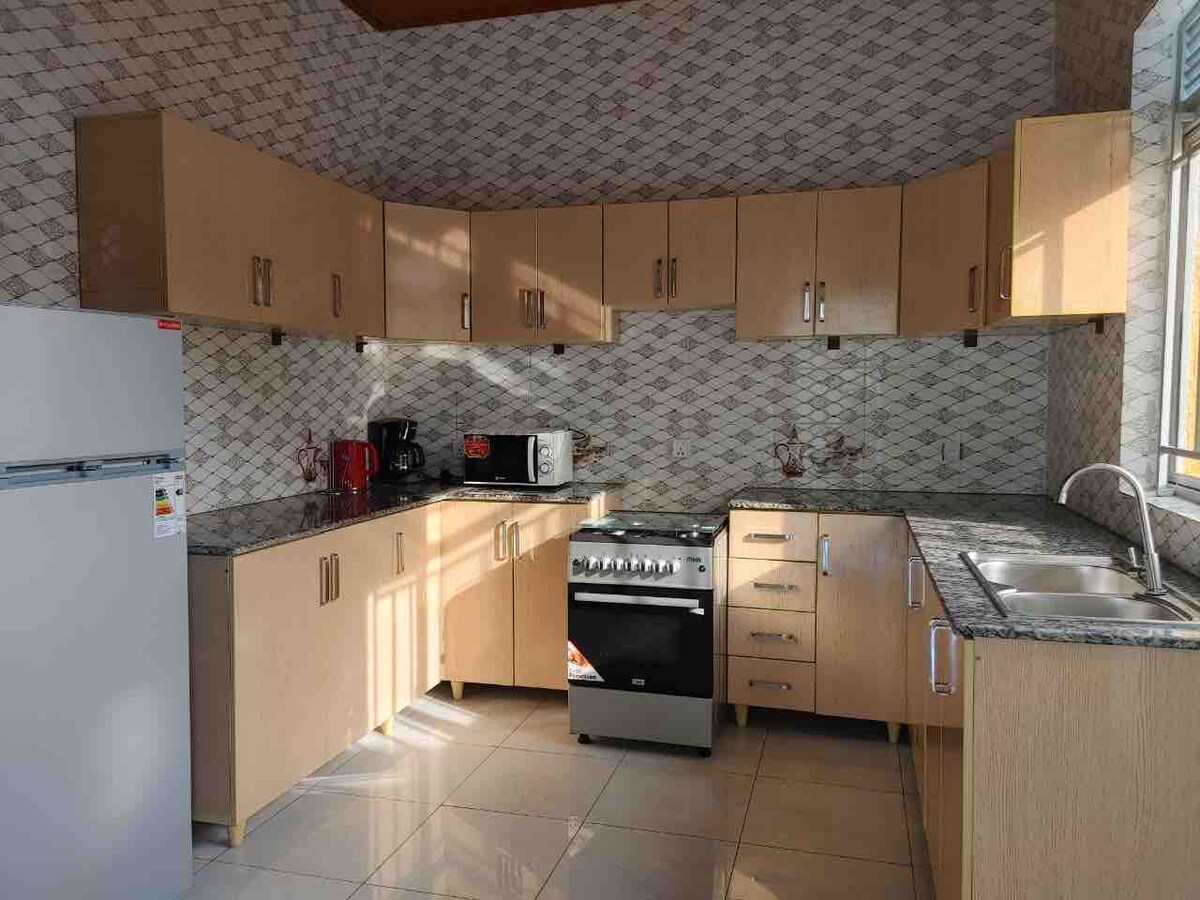 Détendez-vous en famille dans cet endroit paisible de Kanombe Kigali, à environ 20 minutes du centre-ville de Kigali. elle est toute neuve de 4 CHAMBRES et 3 SALLES de bain entièrement meublée . nous avons un concierge en place pour fournir 24h/24 de services dont vous pourriez avoir besoin pendant vos vacances. internet wifi fourni, cour extérieure entièrement clôturée avec portail parking privé pour 3 voitures. Cette maison est adaptée aux familles ou aux groupes voyageant ensemble