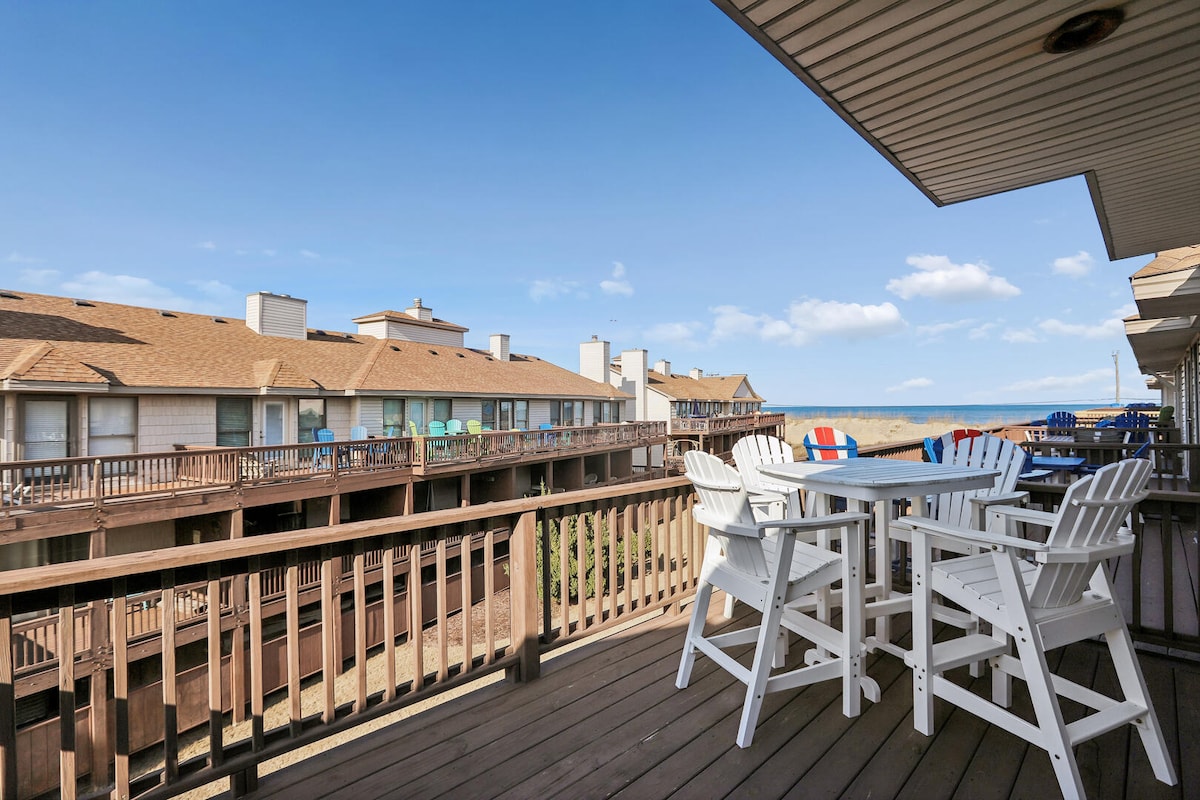 Cette unité d'extrémité en bord de mer (unité A1) a été entièrement rénovée et dispose de grandes fenêtres avec vue imprenable sur l'océan Atlantique au lever du soleil. Le troisième étage dispose d'une nouvelle cuisine, d'une salle à manger pour six personnes, d'une télévision connectée et de sièges de salon. Il y a deux chambres au deuxième étage, chacune avec une salle de bain complète. Vous trouverez tout votre équipement de plage dans le garage au rez-de-chaussée. Équipements communautaires privés : accès privé à la plage, piscine, jacuzzi, courts de tennis/basketball/jeux de palets, salle de jeux pour enfants et plus encore.