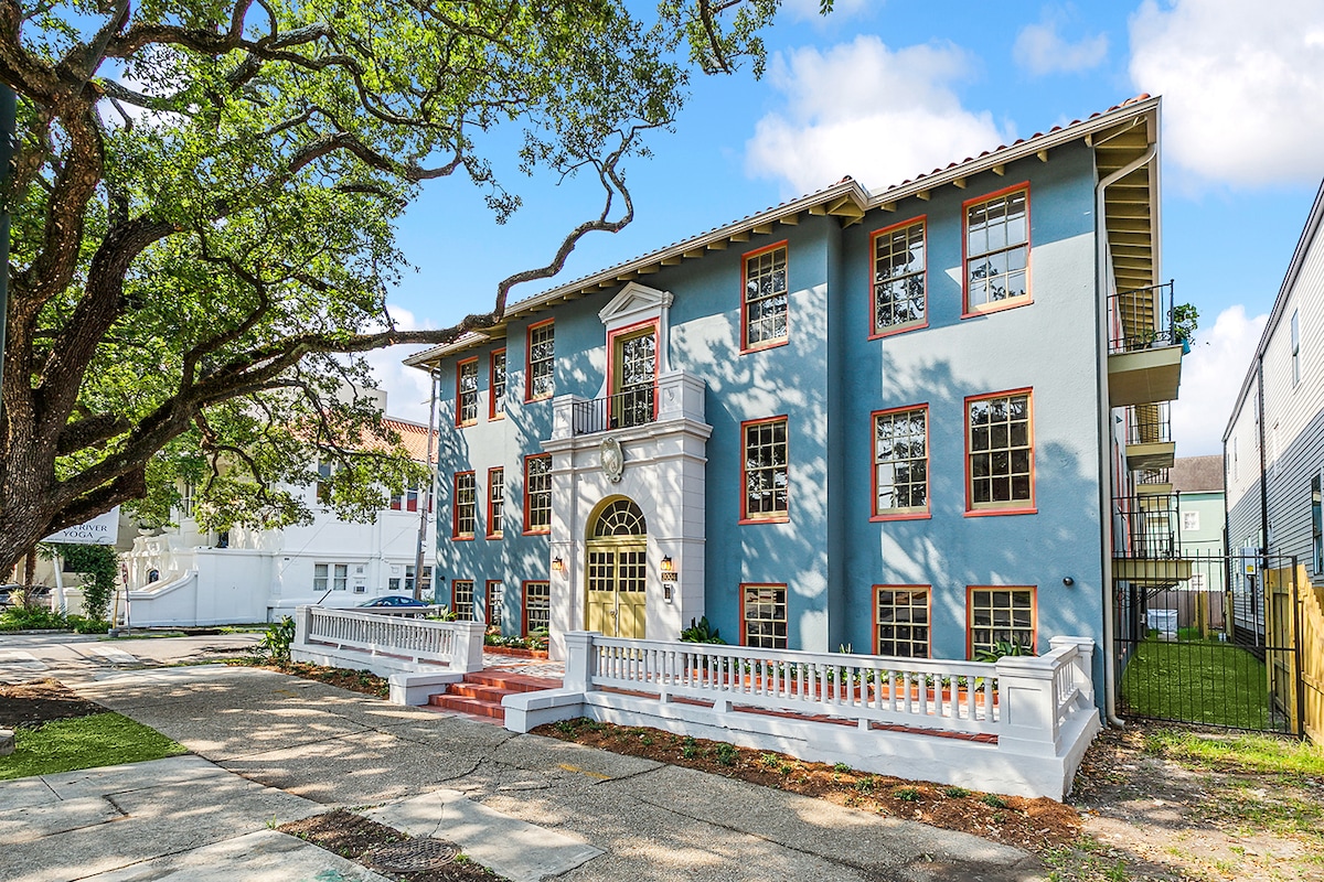 Détendez-vous avec style après une journée d'exploration dans cet appartement confortable, frais et propre, bien aménagé, au rez-de-chaussée d'un immeuble restauré des années 1920. Plan d'étage ouvert avec cuisine, salon, table à manger et lit queen confortable. Situé à Mid-City, sur la ligne de tramway du canal, vous êtes à quelques minutes du quartier français, du quartier des affaires, de Bayou St. John et de City Park, avec un espace paisible pour vous détendre par la suite. Les voyageurs sont également ravis de la tranquillité et de la commodité — à quelques pas du yoga Swan River !