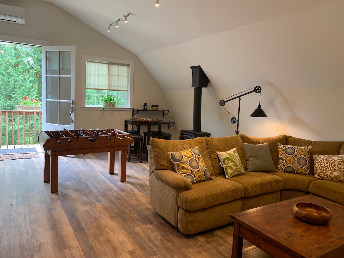 Votre aventure commence... dans un espace neuf, moderne et frais avec beaucoup de lumière naturelle et d'intimité. Imaginez-vous vous réveiller au son des animaux de la ferme, siroter votre café du matin sur votre porche couvert alors que la lumière du soleil traverse les érables à grandes feuilles, parcourir des kilomètres de sentiers forestiers, faire du vélo sur les routes de l'île, du kayak, du paddle board ou parcourir les plages sablonneuses de Puget Sound à la recherche de trésors marins. Lorsque la nuit tombe, partagez des histoires autour d'un feu de camp et comptez les étoiles qui tombent du ciel.