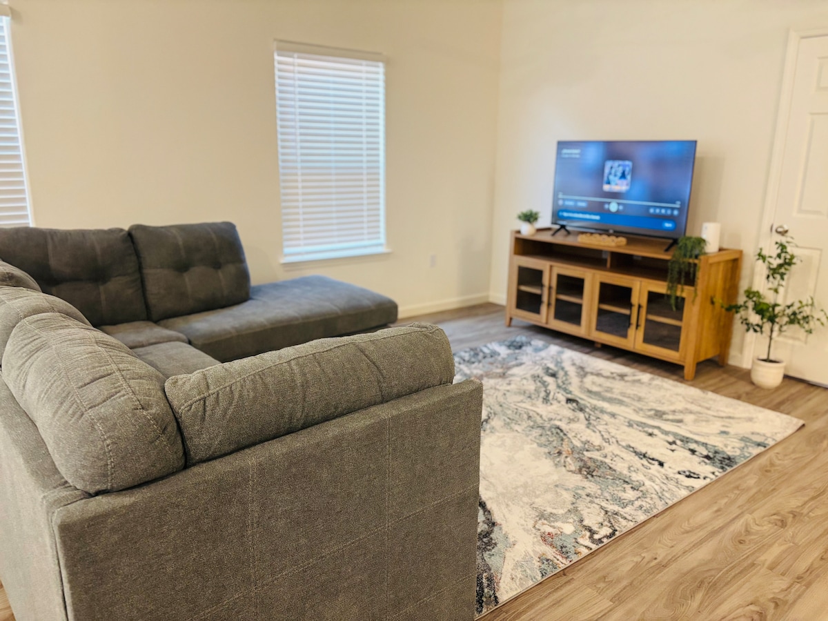 Bienvenue au Heartland Hideaway, une maison moderne de nouvelle construction conçue pour le confort et la commodité. Que vous soyez en voyage d'affaires ou de loisirs, notre logement offre l'escapade parfaite avec toutes les commodités dont vous avez besoin pour un séjour relaxant.