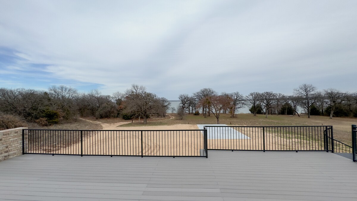 Détendez-vous avec toute la famille dans cette maison paisible nouvellement construite, entourée d'arbres mais à moins de deux milles du lac Texoma. La cuisine spacieuse est un rêve pour cuisiner en regardant par les nombreuses fenêtres donnant sur le jardin de derrière. Le grand porche grillagé est l'endroit idéal pour écouter les oiseaux et observer les cerfs pendant que vous buvez votre café du matin. Une grande plaque de cuisson Blackstone est disponible sur le porche arrière si c'est plus votre style. Une tour cellulaire dédiée fournit un excellent wifi pour le travail à distance.
