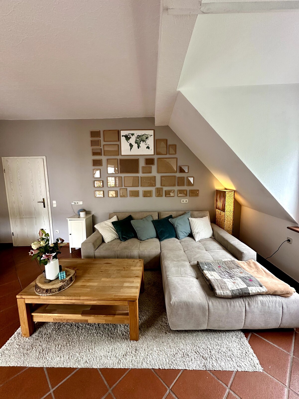 Sentez-vous à l'aise dans notre grand appartement avec salle de bain privée, cuisine et 2 chambres et un grand salon avec table à manger. Profitez de la vue depuis la terrasse ensoleillée juste à l'extérieur de l'appartement. Nous nous réjouissons de votre visite.