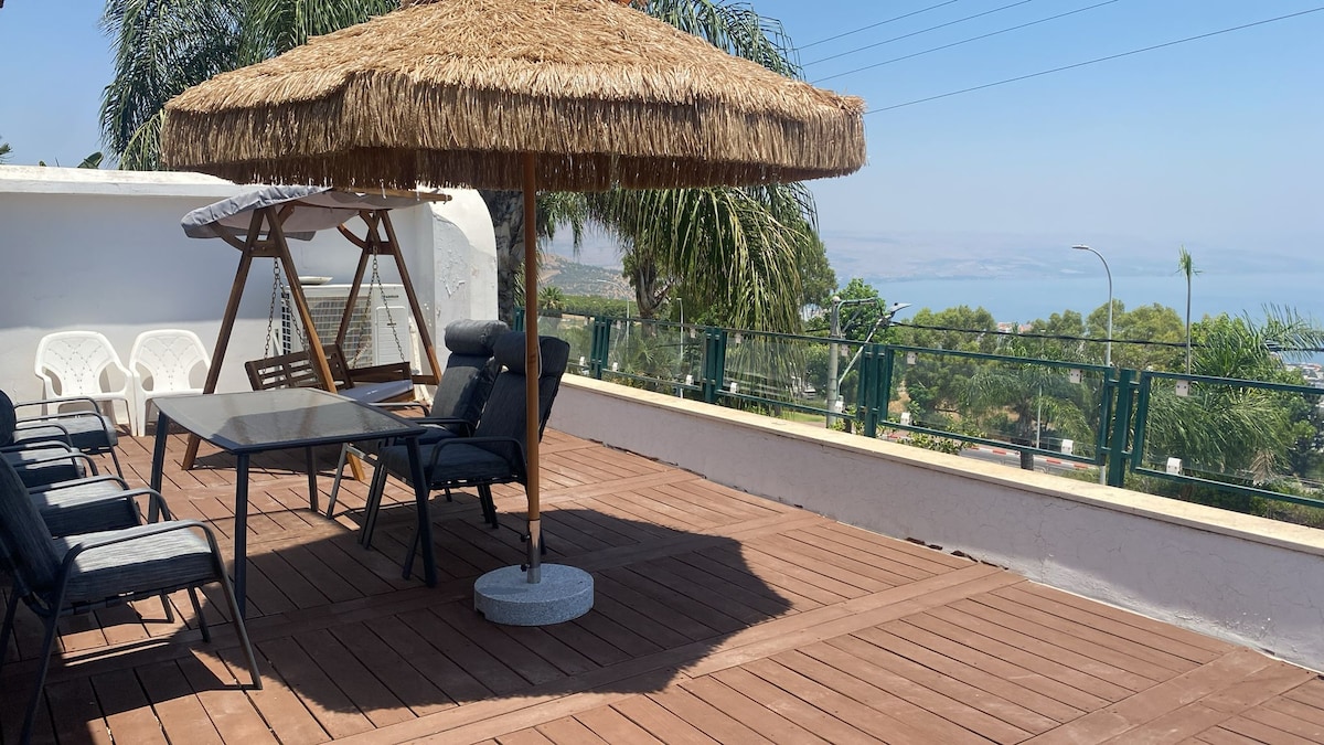 Une belle villa spacieuse, située au sommet de Migdal. Les chambres sont spacieuses avec des commodes, des placards, des toilettes et des douches. Grande cuisine confortable équipée d'un lave-vaisselle, d'une cuisinière et d'un four. Un coin repas spacieux pouvant accueillir jusqu'à 12 personnes. Grand salon avec canapés, fauteuils, télévision et bureau. Grande terrasse ensoleillée au deuxième étage, juste au-dessus du Kibboutz Ginosar, vue sur toute la mer de Galilée, Tibériade, Safed, Hermon. Un autre balcon au rez-de-chaussée avec une table à manger extérieure.