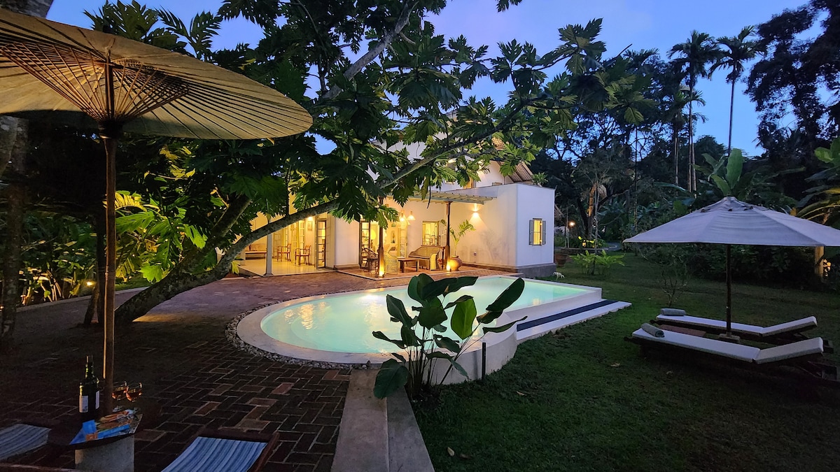 Villa-boutique tropicale, entièrement équipée , nichée parmi les rizières et la jungle avec de grands espaces extérieurs donnant sur la piscine à débordement. Publiée à nouveau comme l'une des plus belles villas du Sri Lanka par Condé Nast Traveler. Garantie de repos et de tranquillité et à seulement quelques minutes en tuk-tuk de la plage, Galle et Ahengama. Peut accueillir 8 personnes sur 4 chambres avec toute la climatisation et la salle de bains attenante ( y compris la salle familiale avec chambre communicante).