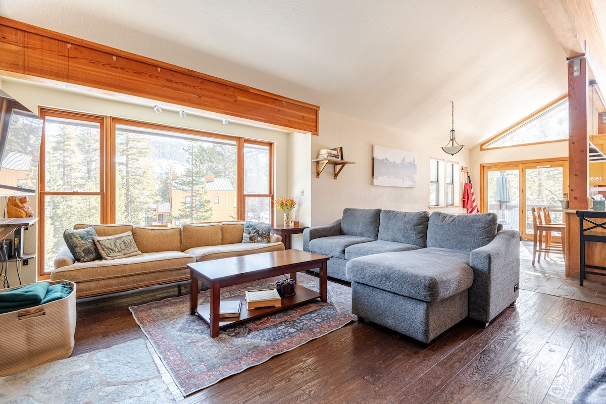 Bienvenue au chalet Echo View, près de Modern Mountain Vacations. Bordant la forêt, notre maison offre UNE VUE IMPRENABLE et est idéalement nichée derrière d'énormes rochers - la base idéale de Tahoe toute l'année ! Accrochez des amis et de la famille sur la terrasse arrière surplombant la forêt + le mont Tallac, construisez un bonhomme de neige géant dans la cour et descendez jusqu'à l'étang de la scierie douce. Configurez pour les familles ! Nous avons des barrières pour bébés, des jeux, une chaise haute + beaucoup de jouets et de livres pour enfants prêts pour vous. Chiens sur approbation !