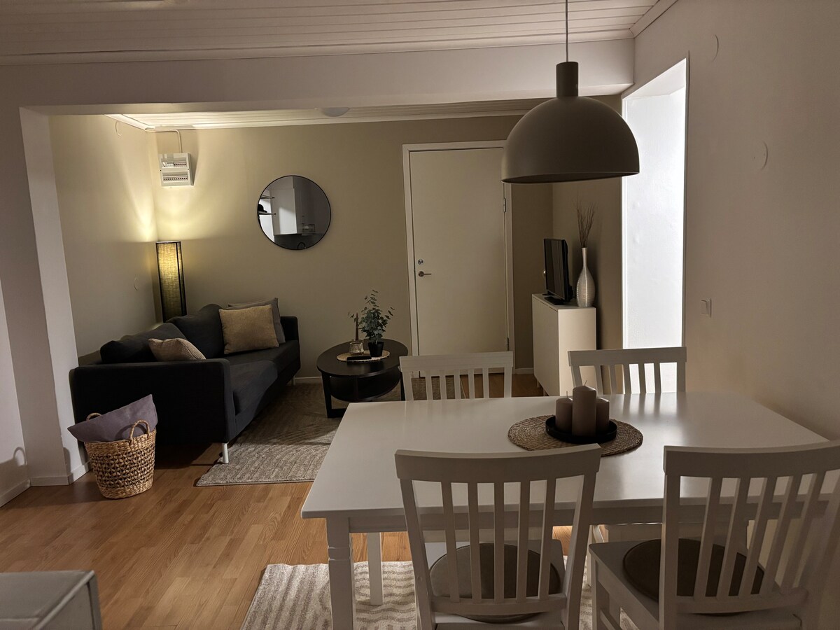Bienvenue dans notre hébergement confortable ! Les chambres offrent des lits doubles de taille normale. Dans la cuisine et le salon combinés, il y a un lave-vaisselle, un réfrigérateur et un congélateur, une plaque à induction, un four à micro-ondes et un coin repas confortable. Le logement est idéal pour 4 personnes, mais si vous êtes plus nombreux, il y a aussi un canapé-lit pour plus de places de couchage. Dans le salon, il y a une télévision intelligente de 55 pouces. Le logement est situé à proximité d'un arrêt de bus et d'une épicerie, à distance de marche du nouveau et de l'ancien centre-ville de Kiruna et d'un parking à l'extérieur de la maison.