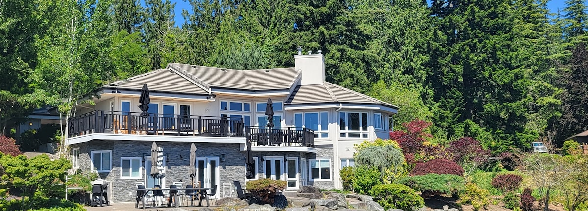 Retraite de luxe de 4 chambres récemment rénovée en bord de mer avec vue imprenable sur le Puget Sound et le mont. Vue sur Rainier. Profitez d'une plage privée, de 4 terrasses, d'un hamac, de foyers extérieurs et d'un kayak pour explorer. À l'intérieur, détendez-vous dans le salon ouvert et lumineux avec des plafonds voûtés, des murs de fenêtres, une cuisine moderne et une salle de jeux amusante. Parfait pour les familles et les groupes de 9 personnes ou moins. À seulement un trajet en ferry de Seattle, votre escapade côtière ultime pour la détente, la connexion et l'aventure au bord de l'eau.