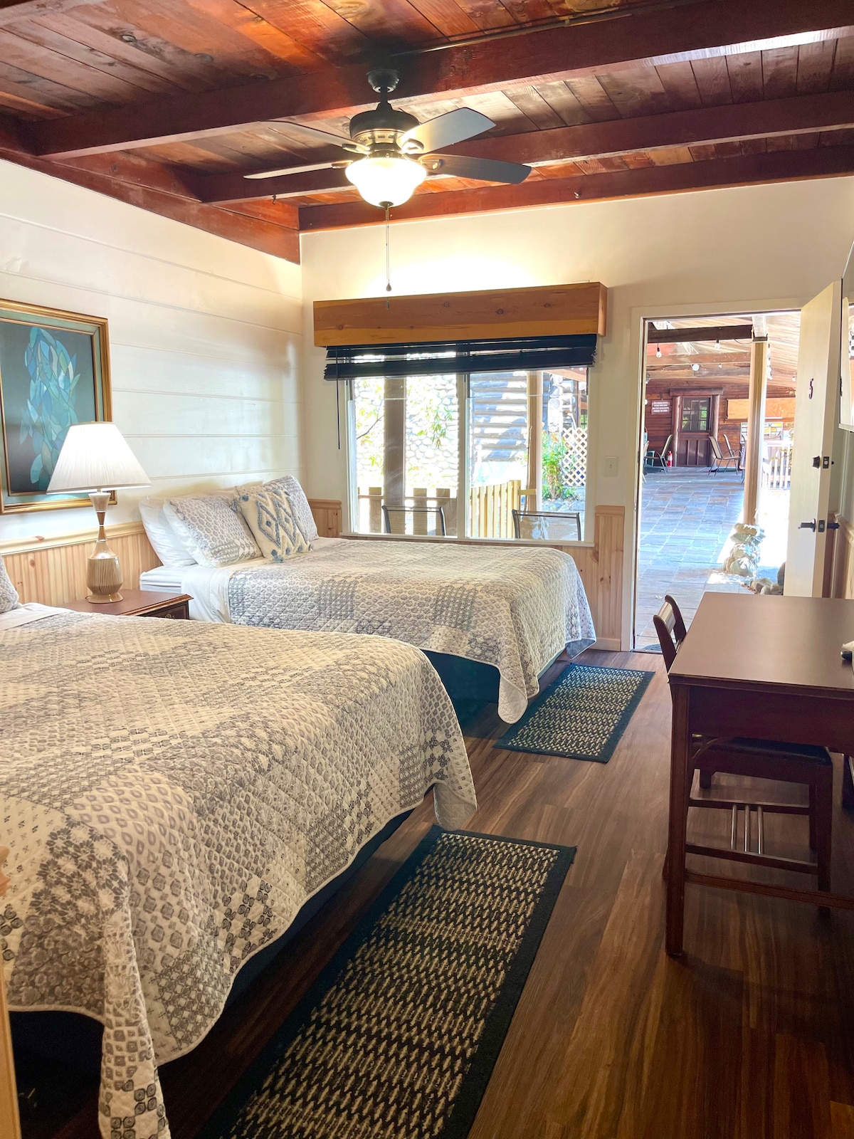 Le Patrick Creek Lodge est le séjour idéal pour votre voyage dans les séquoias. Situé au confluent de Patrick Creek et de la rivière Smith, ce gîte historique ne manquera pas de charmer tous ceux qui y séjournent. Les chambres de motel ont une ambiance classique des années 60. Un très grand lit, un mini-réfrigérateur, un micro-ondes et une cafetière facilitent l'apport et la préparation de nourriture jusqu'à la réouverture de notre restaurant. VEUILLEZ NOTER que nous sommes au milieu d'une forêt nationale. Le pavillon principal et le bar sont fermés. Le WiFi est satellite et pas vos vitesses de grande ville