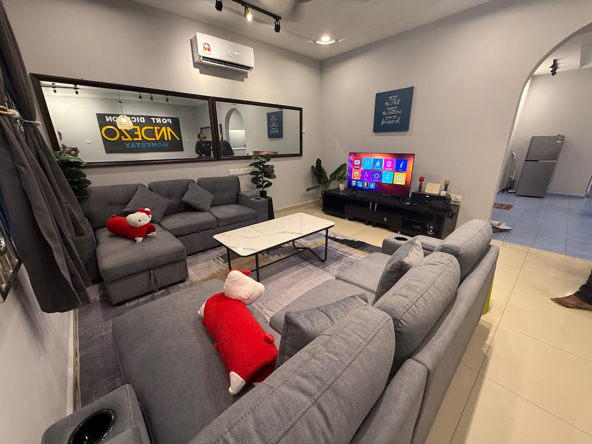 Andezo Homestay Port Dickson est à 1 minute à pied de la plage de Tanjung Gemok ~ Wi-Fi gratuit ~ Karaoke ~ Table de billard - cuisinière à gaz avec ustensiles de cuisine - Machine à laver - distributeur d'eau ~ Barbecue - piscine pour petits enfants - 4 chambres avec climatisation - 3 salles de bains avec chauffe-eau - Peut accueillir jusqu'à 17 personnes