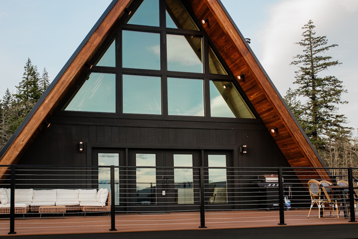NOUVELLEMENT rénové! Maintenant, il y a de la place pour 12! Notre imposante maison en A avec des fenêtres du sol au plafond vous invite à la tranquillité de la vie lente à la campagne. Perchée paisiblement sur un bosquet de Ponderosas offrant une vue époustouflante sur les collines de Columbia et un majestueux mont Hood, cette retraite offre une évasion de l'agitation de la vie urbaine et vous plongera dans une tranquillité bien méritée. Profitez du ciel étoilé sur notre terrasse spacieuse, ou d'une dégustation lente de Pinot dans un vignoble voisin.