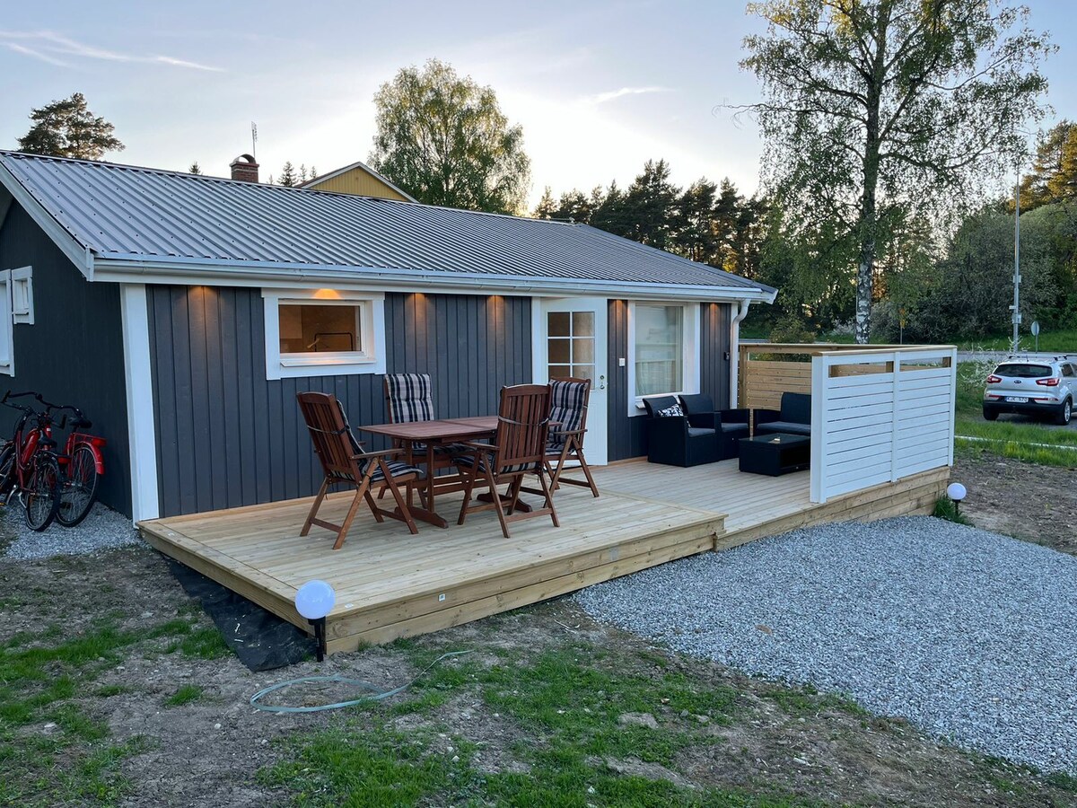 Cette confortable tiny house de 24 m² offre pour max. 3 personnes tout ce dont vous avez besoin. Avec une hauteur de plafond de 4 m, elle dispose d'un loft pour 2 personnes et un canapé-lit peut accueillir 2 autres personnes. Il y a une cuisine entièrement équipée, une terrasse privée et il est parfaitement situé pour se rendre à Uppsala (9 min), à l'aéroport d'Arlanda et à Stockholm (29 min). Le supermarché le plus proche est à seulement 500 m et le lac de baignade dans le village est à environ 1,5 km.