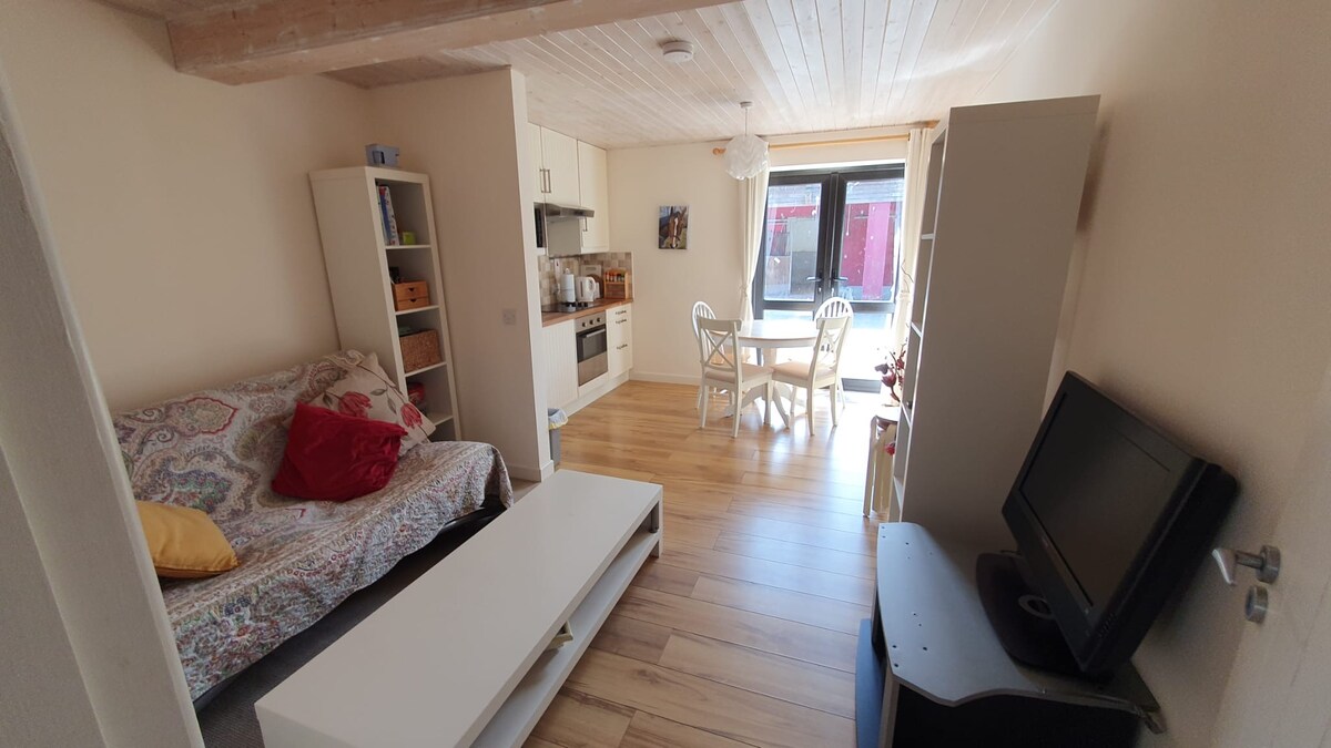 Appartement privé avec salon spacieux, cuisine entièrement équipée et salle à manger, belle chambre avec lit king size de luxe ; Internet haut débit, Eir TV plus Netflix et jardin à l'arrière. Parfait pour travailler à domicile. À 10 minutes à pied de la ville avec de superbes boutiques, restaurants, pubs et attractions pittoresques. Quartier convivial ; beau parc en face ; populaire pour la promenade des chiens.