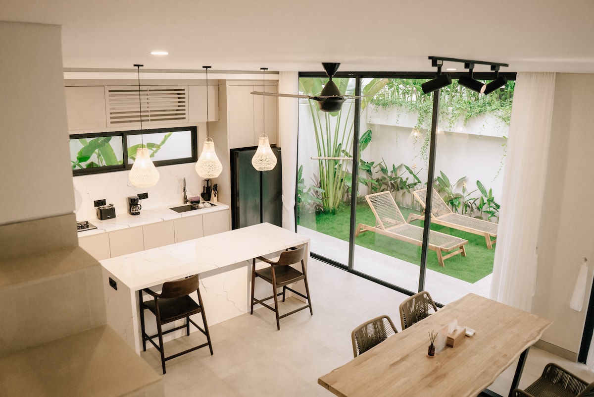 Entrez dans la toute nouvelle et luxueuse villa 3BR nichée dans un quartier serein au cœur de Kuta. Jaman Villas est un endroit relaxant à proximité de tous les restaurants, magasins, plages, gymnases et studios de yoga. Profitez de cette toute nouvelle villa design, située dans un quartier calme mais à quelques minutes des meilleures plages de Kuta et à proximité du centre avec des restaurants, des cafés, un centre de yoga, etc. • Salon spacieux et lumineux à aire ouverte avec fenêtres du sol au plafond. •Cuisine entièrement équipée ; • Piscine privée et terrasse avec chaises longues en bois.