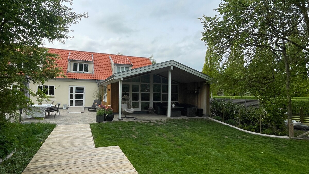 Détendez-vous en famille dans cette maison paisible. Il y a de la place pour le confort, la cuisine et les jeux de société à l'intérieur. Jardin avec trampoline et possibilité de dormir dans une petite cabane dans le jardin. Allumez le barbecue sur notre belle terrasse, il est possible de prolonger la soirée en allumant le chauffage du patio. N'oubliez pas l'après-shampoing anti-moustique. La plage est à 7 minutes à pied de la maison 2 min à pied de la connexion S-train 35 min jusqu'à la gare centrale de Copenhague. Possibilité de recharger une voiture électrique ( type 2).