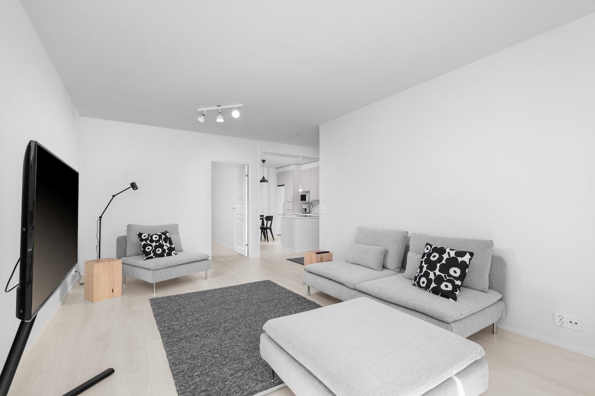 Rénové et meublé avec des meubles neufs de haute qualité (2025) et de l'équipement, cet appartement avec sauna est situé au cœur de Kokkola. L'appartement a sa propre climatisation. Balcon vitré et place de stationnement pour voiture électrique à côté de la porte d'entrée. Accès sans obstacle. Dernier étage de la maison avec ascenseur (3 chambres + cuisine + salle de bain + sauna). Éclairage d'ambiance réglable dans toutes les pièces. À proximité, vous trouverez la vie nocturne et les restaurants de Kokkola, ainsi que les possibilités d'exercice de Suntinvarre. Malgré son emplacement central, l'endroit est paisible.