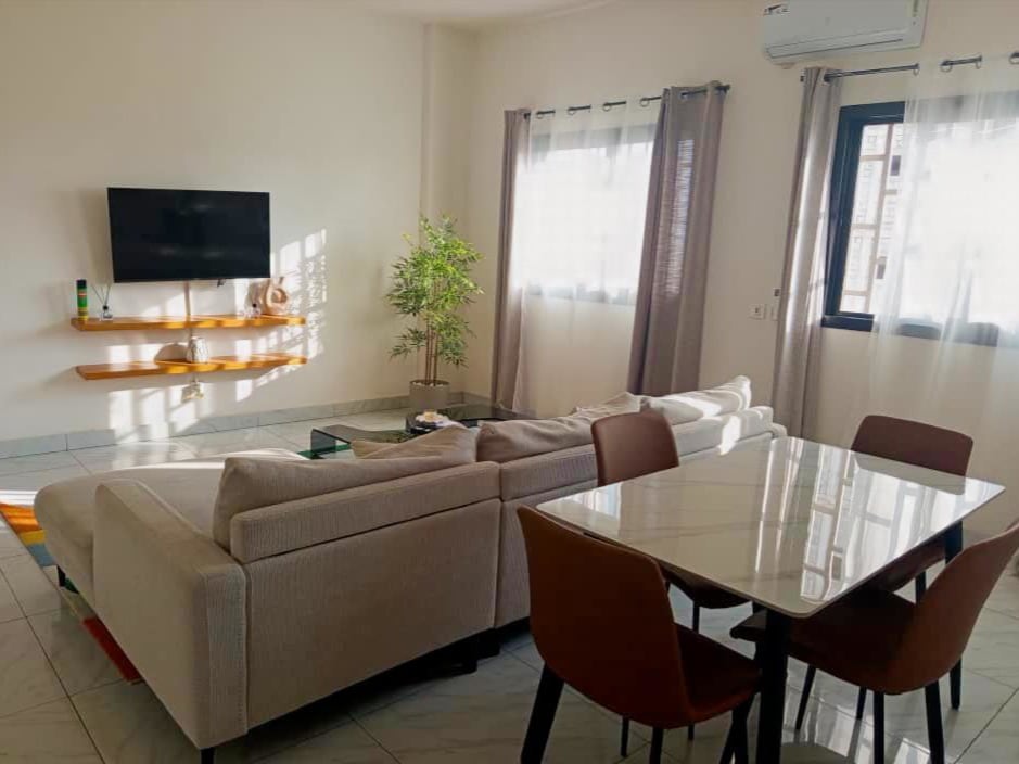 Appartement haut standing situé au cœur du quartier Louis à Libreville. Profitez de deux chambres spacieuses, d’un grand salon lumineux, d’une cuisine équipée et de deux terrasses idéales pour se détendre. Wi-Fi haut débit, climatisation, parking sécurisé et service de ménage disponibles. Emplacement premium, parfait pour voyageurs d’affaires ou séjours détente.