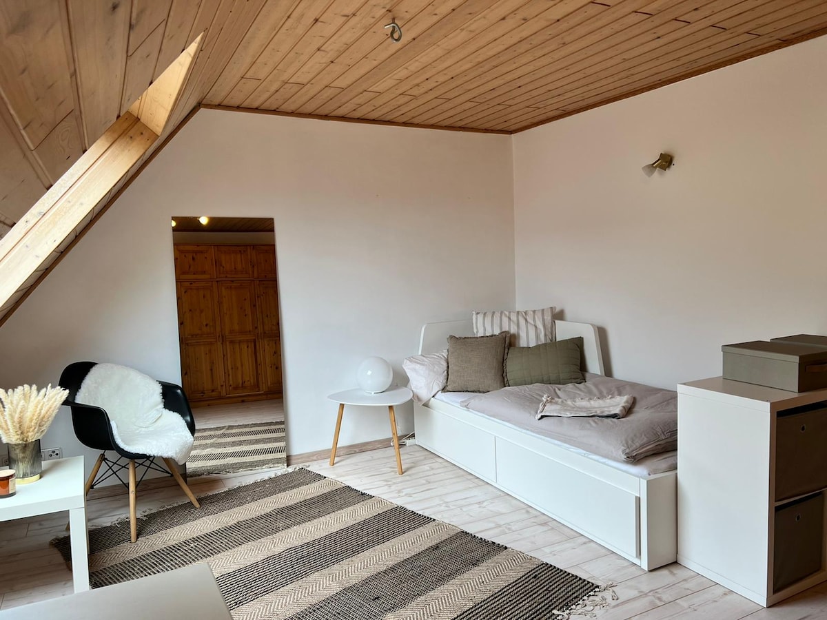 Profite de la vie dans ce logement situé au centre. Ce que nous t'offrons : - une jolie chambre en sous-sol avec mini-cuisine et salle de bain - 10 min à pied du centre-ville - 3 min à pied de l'arrêt de bus - situation calme dans la troisième rangée - Place de parking pour ton vélo - Utilisation commune de notre terrasse Ce qui peut déranger : - La maison est bruyante, la cuisine est juste au-dessus de l'appartement, pas d'isolation phonique, en semaine à partir de 6h - la douche n'est haute que de 1:85 m - pas d'accès pour les personnes à mobilité réduite