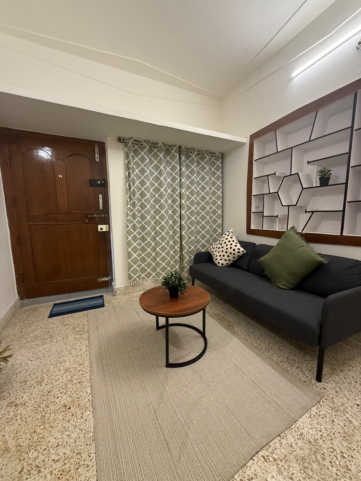 My "Japandi" inspired apartment blends Japanese simplicity and minimalism with Scandinavian comfort and coziness. During your stay, you will experience Japanese style low seating and a balcony overlooking greenery. Enjoy 5 star energy efficient modern amenities and an equipped kitchen. Our Airbnb is centrally located, 10 mins from Christ university, Lalbagh and the Jayanagar Metro station. A unique hideaway on a quiet dead-end street.