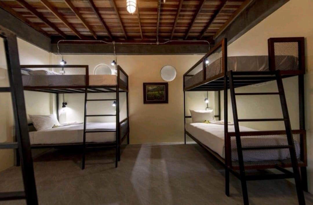 Une chambre de dortoir privée, pour 8 personnes, dispose de lits superposés pour 8 personnes avec un matelas en mousse confortable. La chambre dispose de nombreux rangements, d'une coiffeuse, de 2 climatiseurs et de 2 salles de bains attenantes avec pomme de douche à effet pluie chaude et froide. La chambre elle-même est non-fumeur, mais si les voyageurs souhaitent fumer, ils peuvent le faire sur le balcon. Nous avons 2 balcons pour la chambre qui offrent 2 ensembles de table et 2 chaises. Serviettes, gel douche et shampoing sont fournis. Wifi dans tout l'établissement.