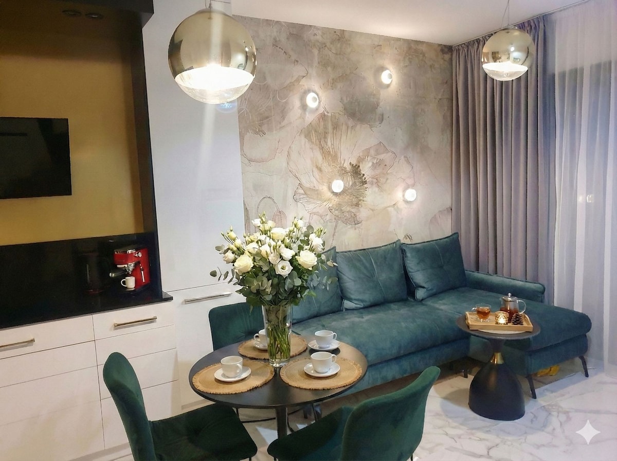 L'appartement est équipé d'un lit confortable, d'un canapé-lit et d'une télévision LED 4K de 55 pouces. À côté se trouve une cuisine qui comprend une plaque chauffante avec un four, un évier, un lave-linge, un réfrigérateur et les ustensiles de cuisine et la vaisselle nécessaires. Un avantage incontestable et un grand équipement est l'ascenseur. L'appartement européen est un lieu de séjours touristiques et d'affaires. Si vous voulez passer des moments inoubliables, ce logement est pour vous.