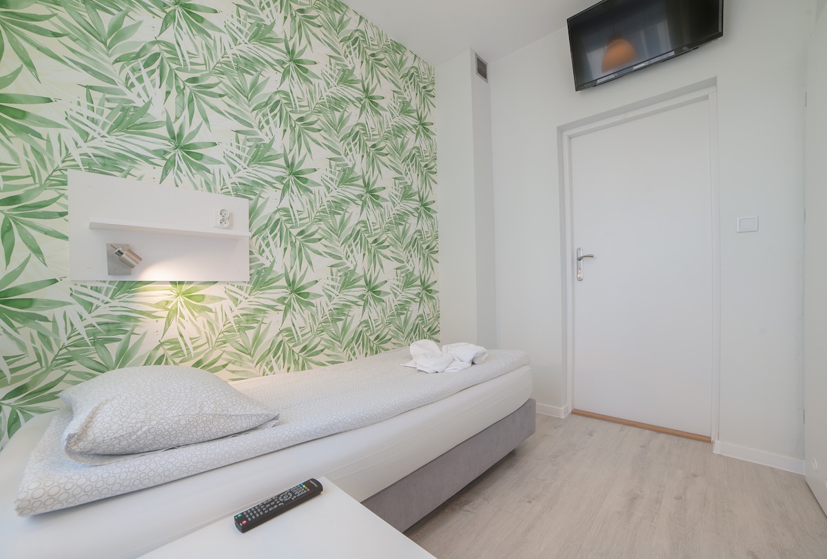 Pokój jednoosobowy typu deluxe z prywatną łazienką. Pościel oraz ręcznik w cenie pokoju. W pokoju znajduje się telewizor. Bezpłatny dostęp do internetu. Recepcja czynna 24 godziny na dobę, 7 dni w tygodniu. Goście mogą skorzystać z ogólnodostępnej, w pełni wyposażonej kuchni, gdzie czeka na nich darmowa kawa i herbata. Zapraszamy!