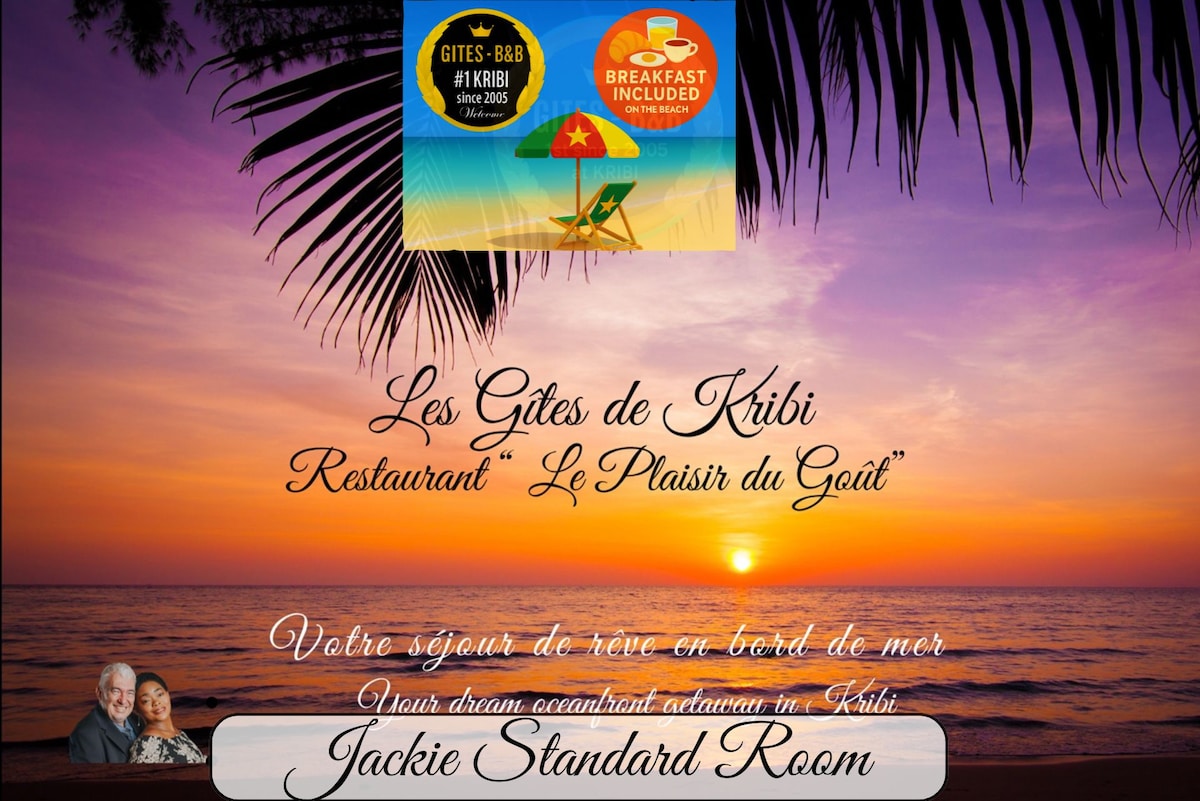 Laissez-vous séduire : Chambre Jackie standard confort, créée 2025, se trouve dans Jea Paradise, la nouvelle partie des Gîtes de Kribi avec piscine privative. Elle offre une ambiance chaleureuse, idéale pour un couple ou un voyageur solo : climatisation, literie confortable, douche moderne, wifi fiable, bureau et rangements. Vous profitez de la plage à quelques minutes, des 2 piscines du resort, du spa, et du restaurant Au Plaisir du Goût pour savourer poissons grillés et spécialités locales.
