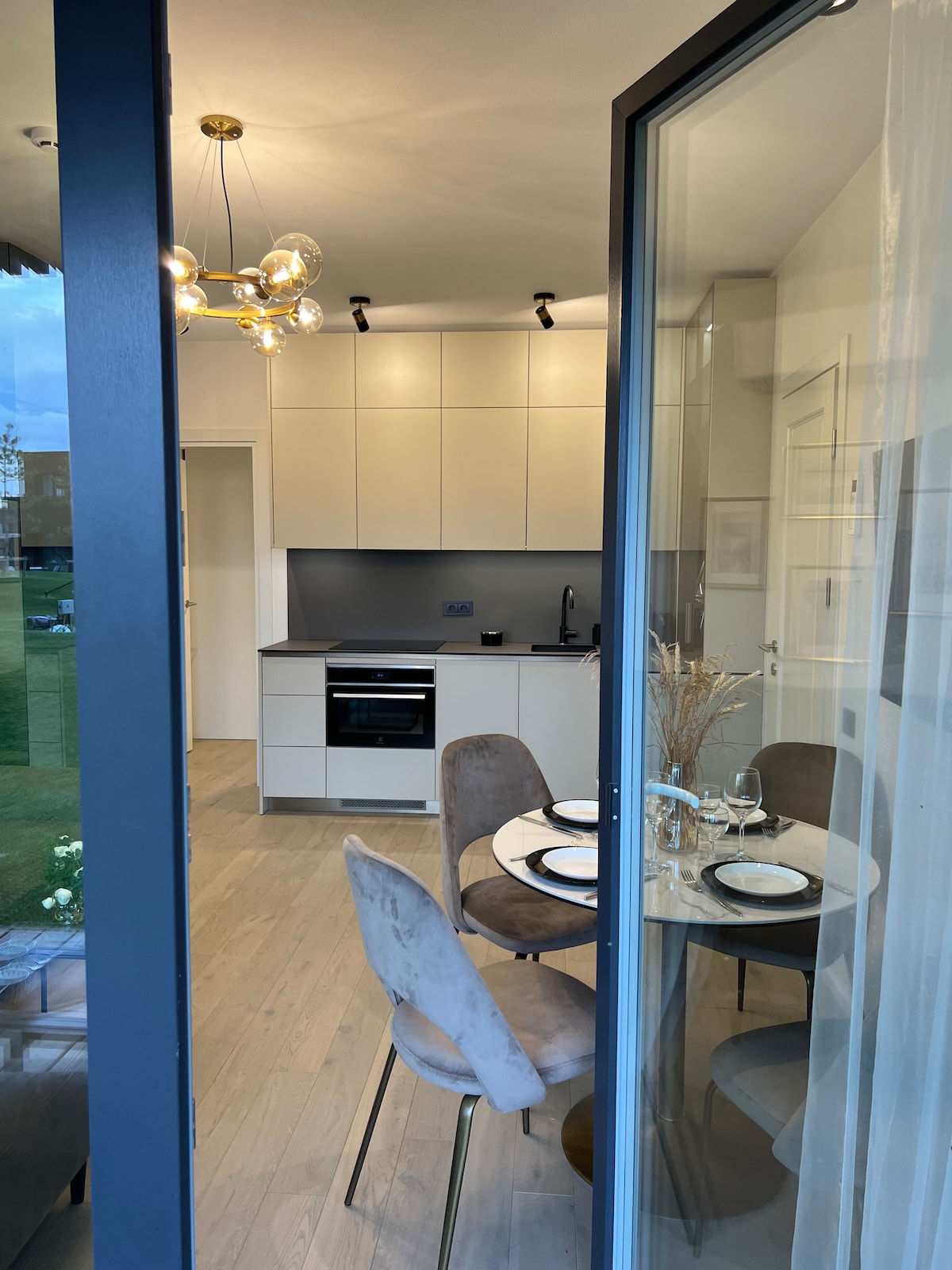 Une suite loft très confortable, unique et exclusive avec sa propre terrasse et une vue panoramique sur la nature. À 600 m de la mer, c'est l'endroit idéal pour les couples, les familles à la recherche d'intimité et de connexion avec la nature. C'est un endroit où le pouls de la ville se mêle à la paix et offre aux voyageurs un sentiment exceptionnel de qualité de détente. Les grandes fenêtres panoramiques vous permettent d'admirer la nature même lorsque vous êtes à la maison, sur la terrasse, il est agréable de se détendre, de profiter de la tranquillité et de l'air pur du bord de mer.