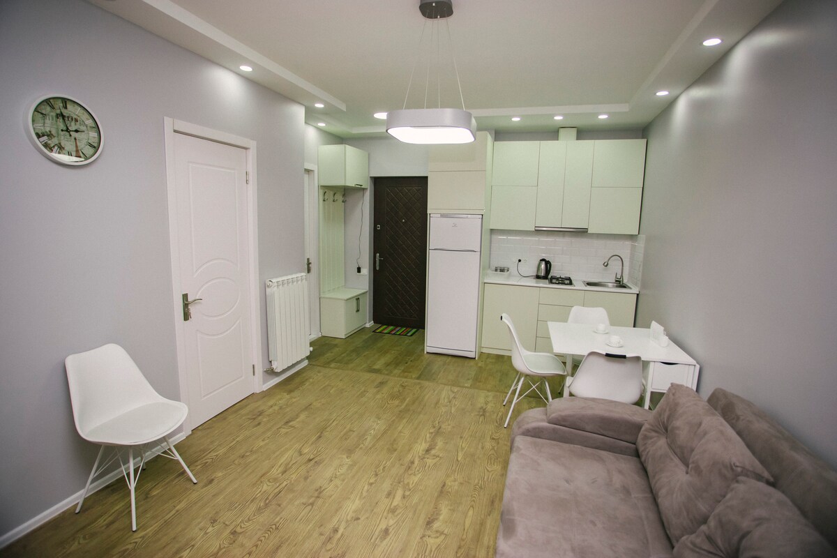 Un tout nouvel appartement-hôtel sur le nouveau boulevard de Batumi . Du grand balcon, il y a une superbe vue sur la mer, la ville et les montagnes. La chambre dispose d'une toute nouvelle rénovation, également équipée des dernières technologies de confort et de sécurité. La première ligne ! Près de l'hôtel il y a : fontaines chantantes et parc aquatique, lac de l'argan et restaurants de cafés, de nombreux divertissements pour les adultes et les enfants. C'est ici que vous souhaitez retourner. Connexion à la fibre Ethernet.