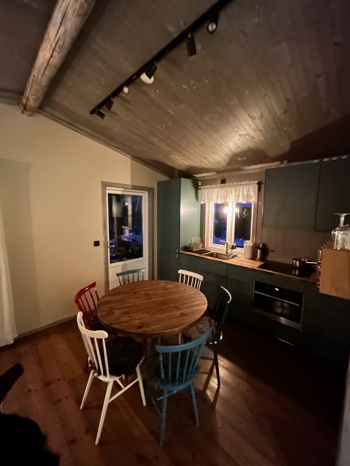 Chalet confortable avec un emplacement incroyablement agréable dans l'environnement de montagne de Kvikk. Proche des sentiers de randonnée, des places de bateau et de la rivière Tarra. Le chalet dispose d'une cuisine entièrement équipée avec tout le nécessaire pour la cuisine et les équipements tels que lave-vaisselle, micro-ondes, cuisinière, four, cafetière, etc. L'étage inférieur dispose d'une entrée spacieuse avec beaucoup d'espace pour les vêtements, d'une cuisine avec coin repas et d'un salon avec canapé-lit. Tout est ouvert. Loft avec quatre lits. Toilettes avec douche et une salle familiale plus petite se trouvent dans un bâtiment séparé.