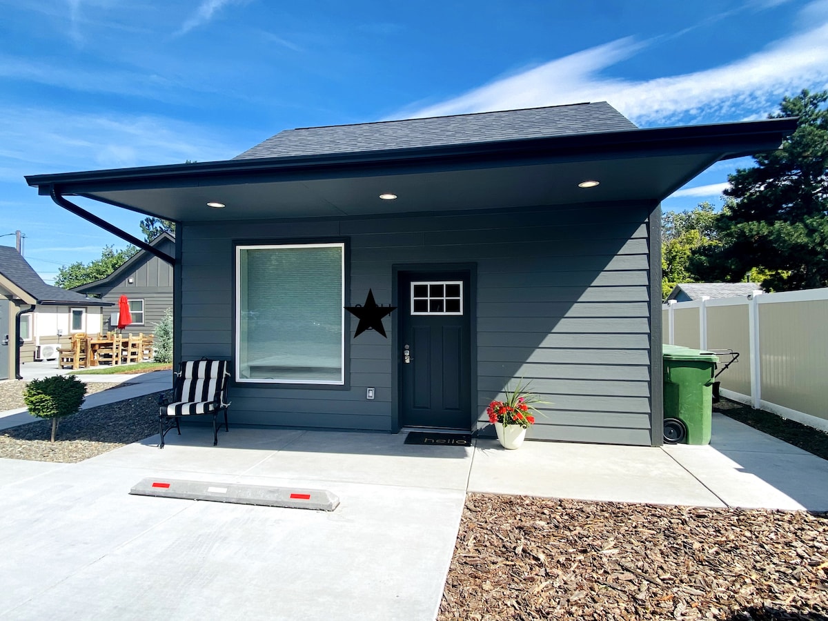 Profitez d'une expérience élégante dans ce chalet situé au centre. Style moderne, le chalet « B » est une maison de 480 pieds carrés qui se trouve en plein cœur de La Grande. Nouvelle construction avec cuisine complète, appareils électroménagers en acier inoxydable, micro-ondes, cafetière Keurig et parking dans l'allée. Situé sur une belle propriété avec vue sur la montagne située à quelques pas de l'hôpital Grande Ronde, de l'Université de l'Est de l'Oregon et à quelques pâtés de maisons du centre-ville de La Grande. Le chalet « B » est l'un des trois cottages disponibles à cet emplacement.