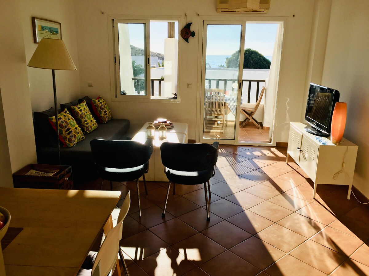 Situé dans le P.N. Cabo de Gata, un lieu plein de paix et de paysages sauvages. Un appartement bon marché équipé de toutes les commodités pour que vous vous sentiez chez vous : climatisation (froid/chaud), mobilier et vaisselle complets, draps, serviettes, électricité, Wi-Fi.
