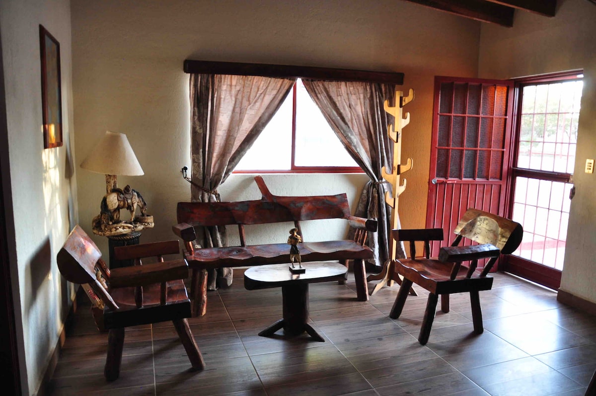 Ranch rustique et élégant dans le sud de Chihuahua Profitez de 2 500 m² de terrain privé avec des arbres, un foyer, un son surround et un éclairage RVB personnalisable. Idéale pour 10 voyageurs et plus (jusqu'à 35 voyageurs moyennant des frais supplémentaires) Équipements : • Ranch complet avec 2 cabanes privées • Foyer avec éclairage RVB de 80/100 W • Système audio Harman Kardon + juke-box vintage • Gril, cuisinière à disque, réfrigérateurs, cuisinière à bois et à gaz • Terrain de basketball, balançoires, piscine et tables de carom • Parfait pour les rassemblements, les célébrations ou les retraites