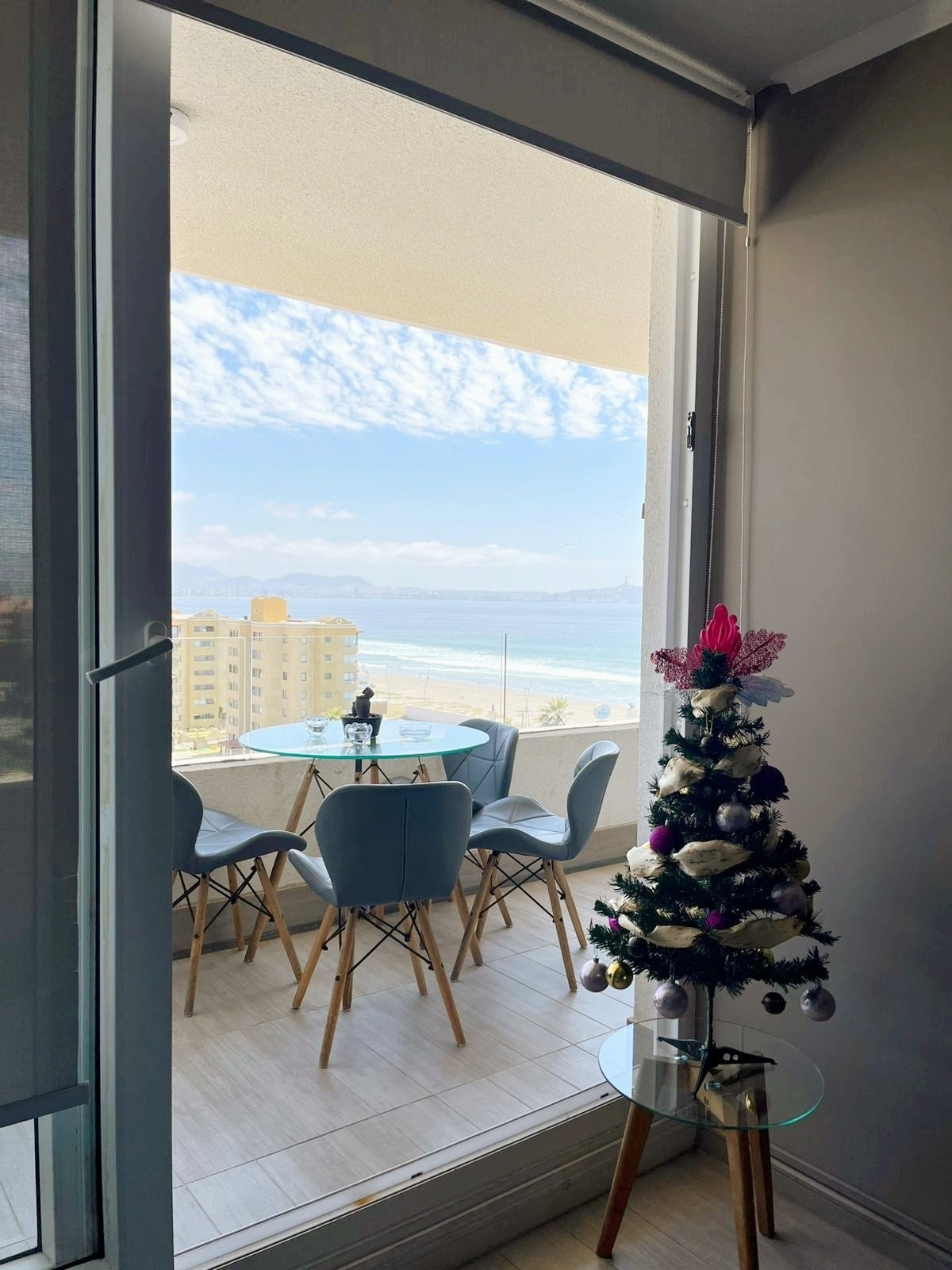 Face à la mer, en première ligne de la plage, à côté du casino Enjoy. Vue directe sur la mer. Bâtiment avec toutes les commodités, piscines, salle de sport, buanderie, portier 24 h/24, parking couvert. À quelques pas des meilleurs restaurants, supérettes, piste cyclable et à 20 minutes de l'aéroport de Coquimbo. Appartement entièrement équipé, avec 3 chambres, pour 6 personnes. Il dispose de la télévision par câble, d'Internet, d'une cuisine équipée, d'un jacuzzi dans la chambre principale, de draps et de serviettes.