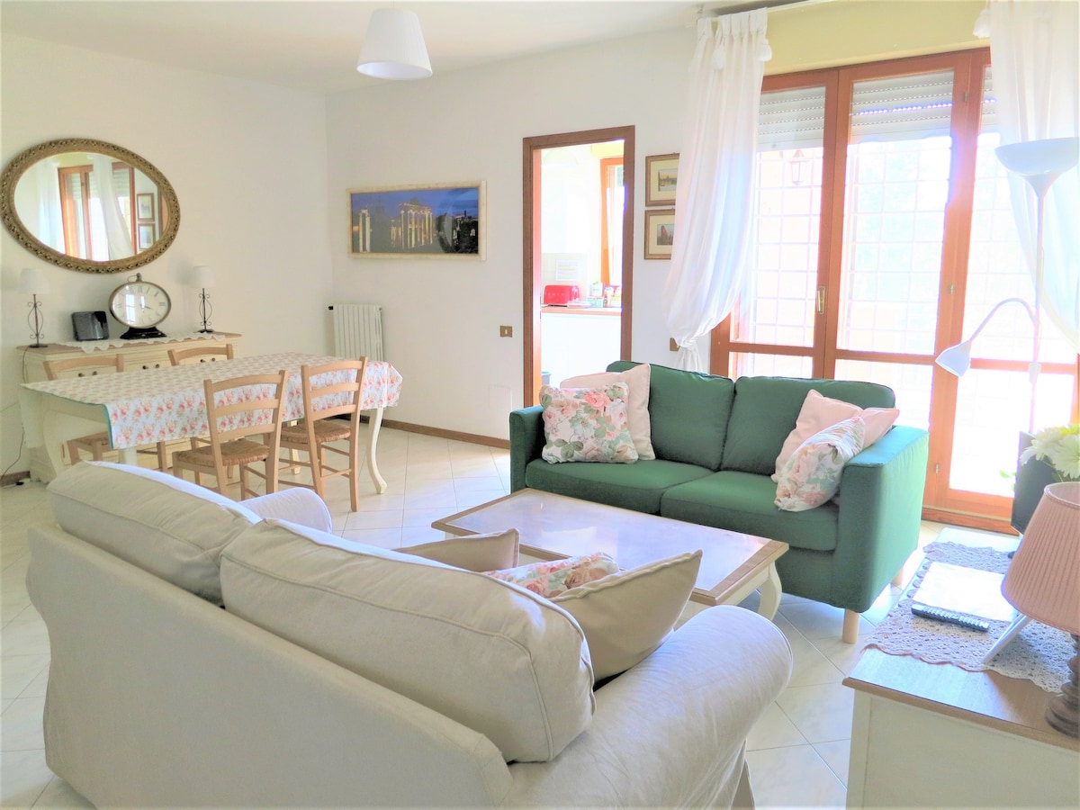 La Dimora del Borgo se compose de deux appartements (suites home), distincts l'un de l'autre, entièrement rénovés dans un style classique moderne, situés dans le centre historique de Fiumicino dans le village caractéristique de Valadier, où vous trouverez des restaurants, des bars, des pubs, de la street food, des magasins. Nous sommes à quelques minutes de l'aéroport Léonard-de-Vinci, de la Foire de Rome et des centres commerciaux Parco Leonardo et Da Vinci. Service de navette aéroport payant.
