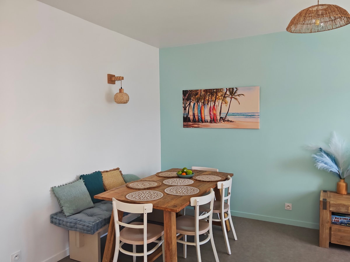 Détendez-vous dans ce logement calme et élégant. Appartement T1 tout équipé situé en rez de jardin d'une maison d'habitation occupée par un couple de jeunes retraités .Ce logement indépendant, neuf, baigné dans un écrin de verdure, situé à 10 minutes à vélo des commerces, à 1500 mètres à pied des plages via la forêt vous séduira par son calme. Vous pourrez découvrir la foret domaniale et son parcours sportif, emprunter les pistes cyclables du littoral directement depuis l'appartement.