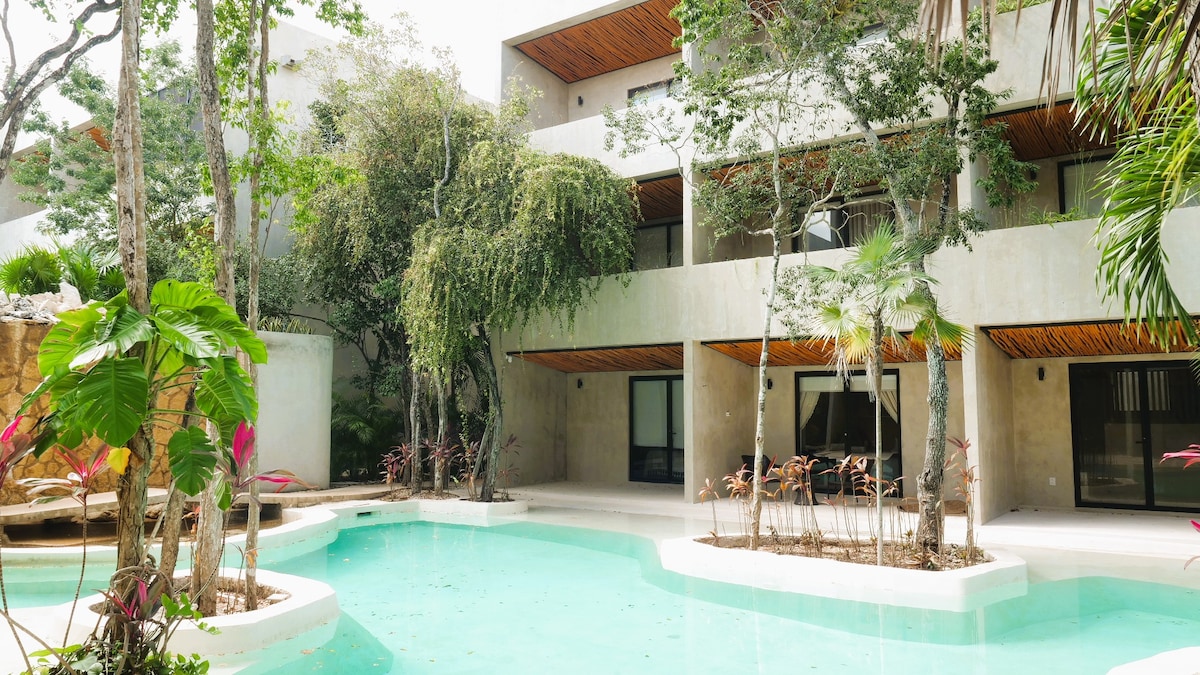 Bienvenue à Areia Tulum. Votre condo swim-up niché entre jungle, plage et ville. Lit king, cuisine équipée, climatisation, WiFi, piscine, rooftop, sécurité 24h. À 10 minutes des plages de rêve. Nouveau aéroport à Tulum pour un accès facile. Tout est là pour un séjour paisible, pratique et inoubliable. Idéal pour un couple, une petite famille ou des amis. Réservez votre escapade tropicale dès maintenant !