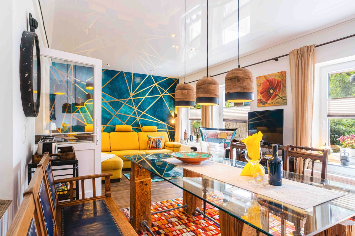 Un appartement de vacances modernisé et lumineux avec un décor intemporel dans le style des années 70 vous attend. Il est situé au 3ème étage d'un immeuble résidentiel très calme sur le site du centre olympique de Kiel Schilksee, à proximité immédiate de la plage. La plage est à proximité (500 m). Vous trouverez également des restaurants, des cafés et un supermarché à proximité immédiate sur le site du centre olympique.
