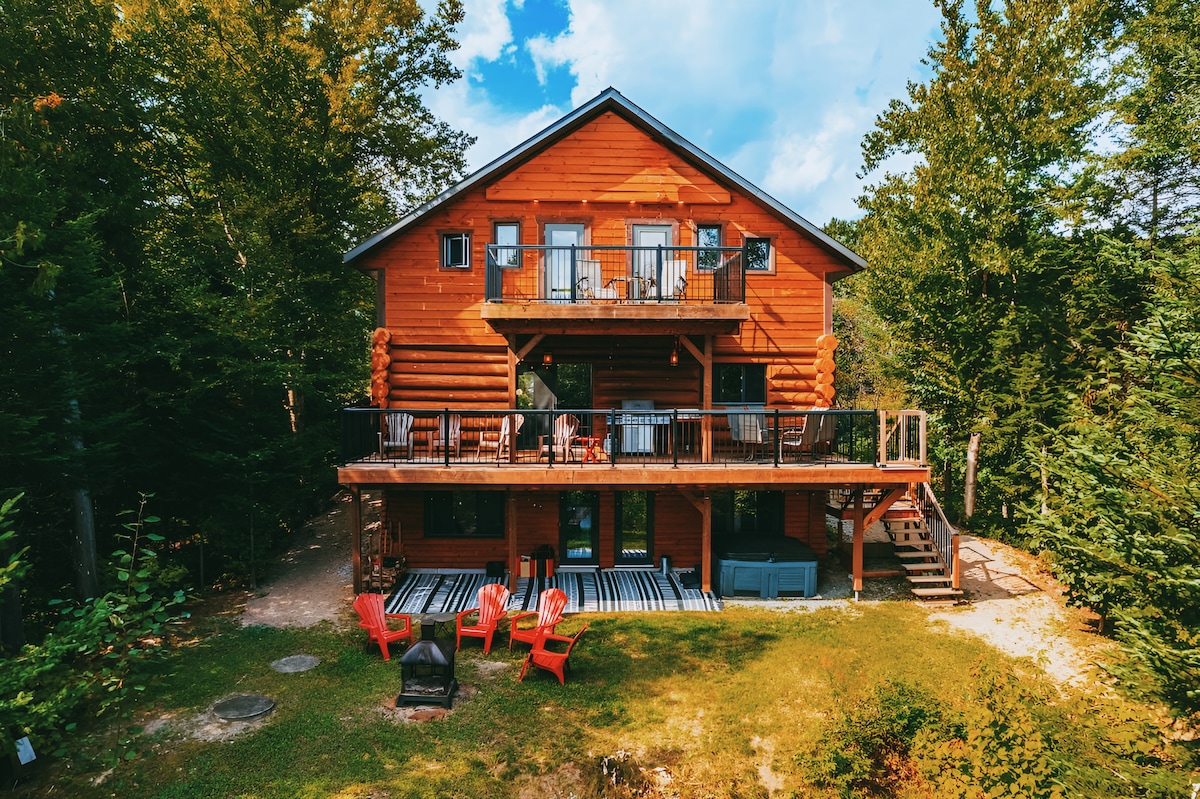 Un chalet exclusif et magnifique, assis sur plus d'un million de pieds carrés de terrain. Confortable pour 2 petites familles ou 3 couples. Nous vous offrons une intimité totale dans la nature. Laissez nos sentiers pédestres le long de la rivière vous charmer avec des accès uniques à la rivière. Si vous avez un animal de compagnie, laissez-le se promener librement sans souci et utilisez des lits, des couvertures et des sacs pour qu'il puisse également se détendre. CITQ#311149