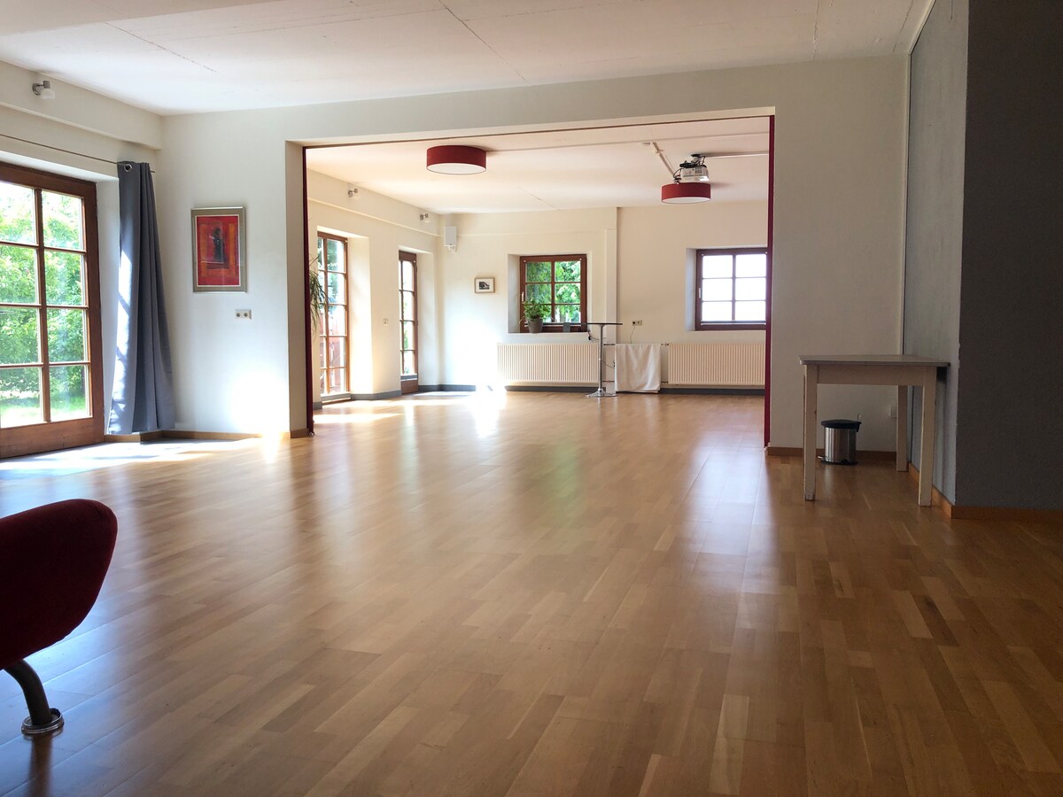 Appartement confortable dans une ancienne ferme, à 3 km de Memmingen, entouré de belles forêts avec des sentiers de promenade, à environ 7 km de l'aéroport de Memmingen et du centre-ville, Lac de Constance accessible en 40 min environ, les domaines skiables des Alpes de l'Allgäu en 60 min environ. Le logement est adapté pour les couples, les voyageurs en solo, les aventuriers, les voyageurs d'affaires, les familles (avec enfants) et les amis à fourrure (animaux de compagnie). Prix de l'appartement pour 2 personnes, chaque personne supplémentaire 15 €.