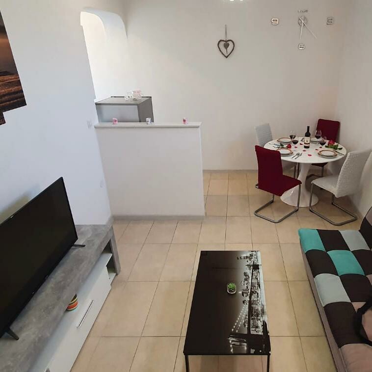 L'appartement est situé sur la rue principale de la vieille ville de Skradin, à seulement 100 mètres du rivage et du bateau pour les cascades de KRKA. Vous avez 2 vélos et SUP (stand up paddle) inclus. Possibilité de griller dans un style dalmatien authentique. ** Pour les séjours de 3 nuits et plus : promenade en bateau sur la rivière Krka ou poisson grillé inclus ** Terrasse méditerranéenne : - Barbecue - Coin salon et salle à manger Chambre : - Lit king size - télévision - climatisation. Séjour et chambre 2 : - canapé-lit pour 2 personnes ; - climatisation ; Cuisine Sport : - 2 vélos - Paddle